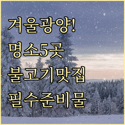 - 미식의 도시: 겨울철 입맛을 돋우는 '광양불고기'와 싱싱한 해산물을 맛볼 수 있습니다.