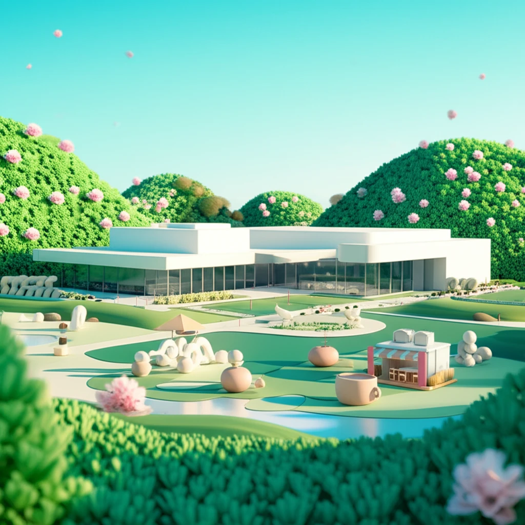 - 야외 공원: 조각 작품과 자연이 어우러진 산책로와 계곡 풍경